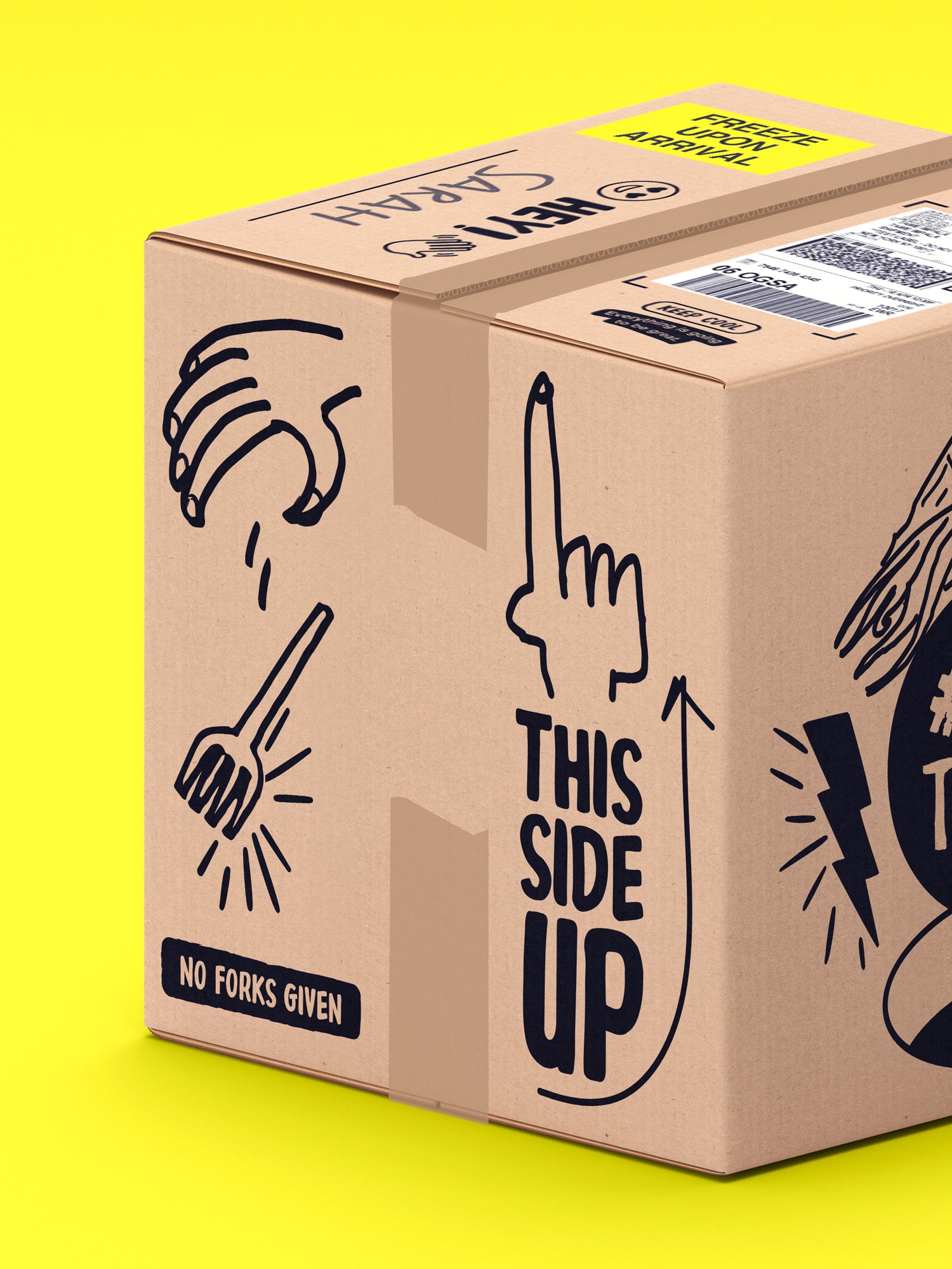 I created two custom-sized shipping boxes that blend function with fun. The challenge: make packaging that stands out while meeting shipping constraints and staying true to the brand’s witty, adventurous tone. I illustrated playful visual elements, added customizable name sections for personalization, and even included hidden “Easter eggs” for curious customers.