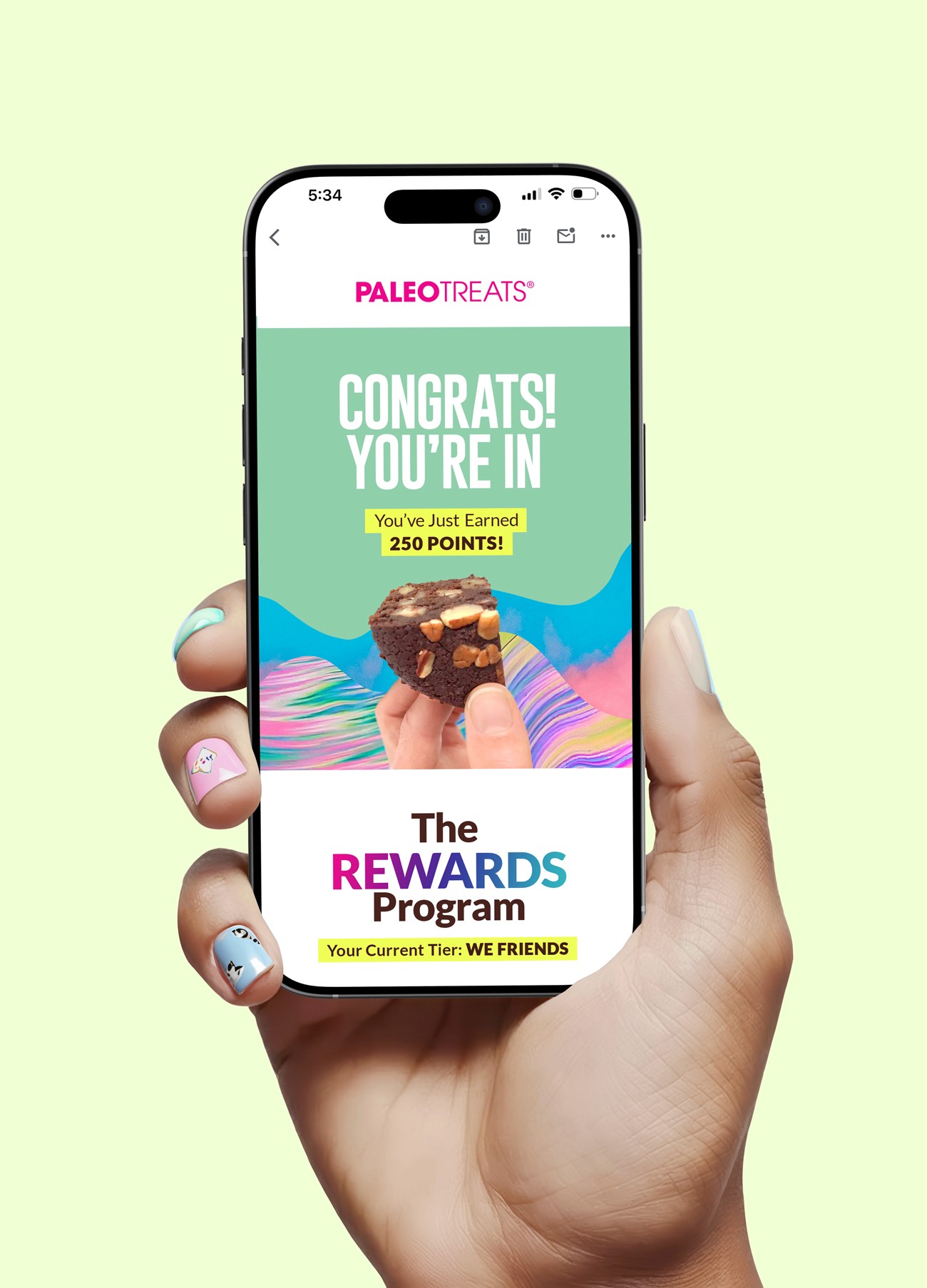 I designed a vibrant, engaging email for Paleo Treats’ rewards program that reflects the brand’s playful energy. With bold colors and a dynamic layout, I established clear, visually distinct sections to enhance readability and create a seamless user experience. The design was developed in Photoshop and built in Optimizely to ensure optimal performance across platforms.