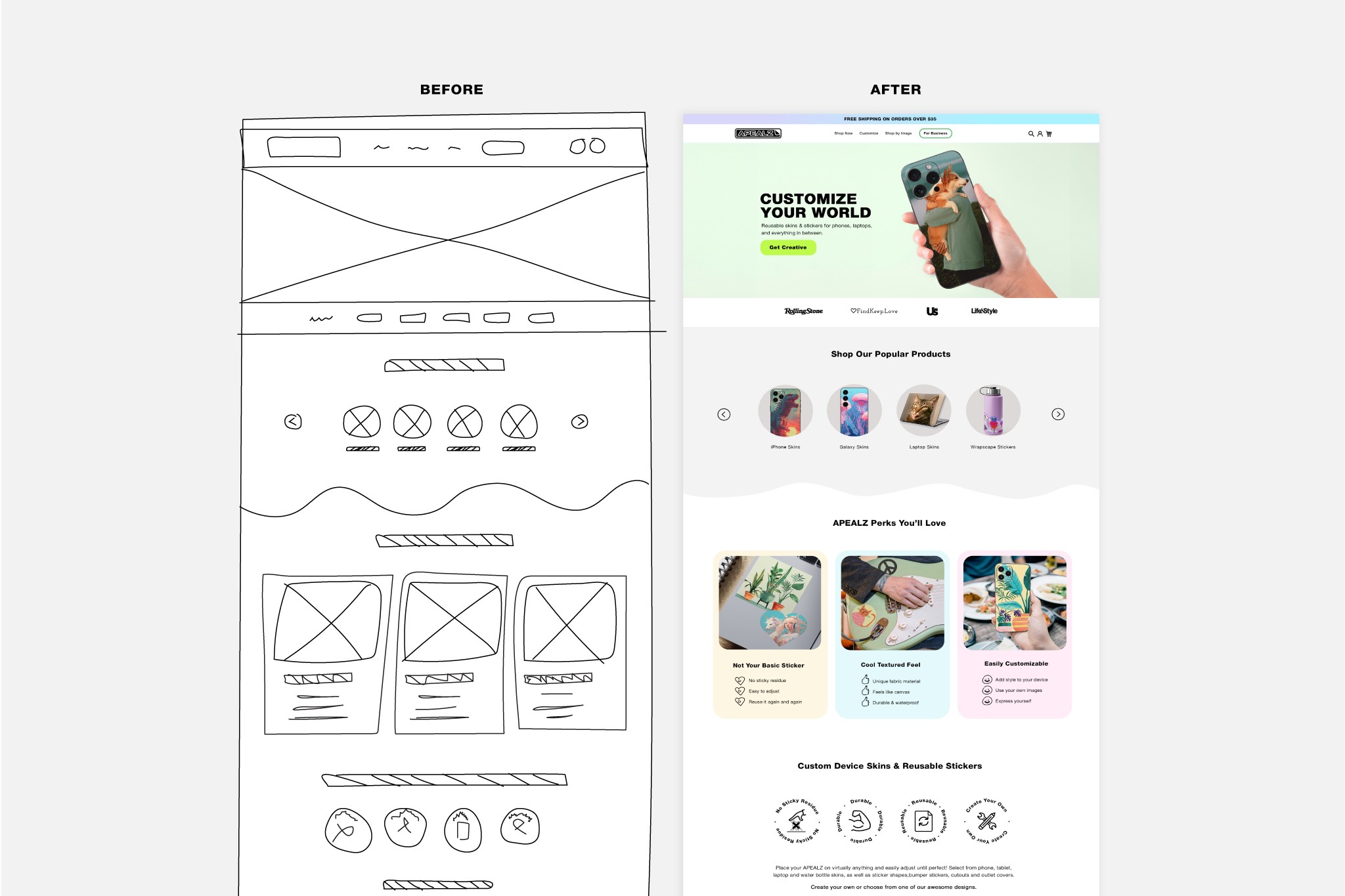 APEALZ needed a homepage refresh that was both playful and strategic. I designed a new layout starting with a wireframe focused on clarity and flow. From there, I applied UX principles and visual storytelling techniques to guide users toward action while modernizing the site’s overall look. The design used bold type, energetic visuals, and a clear hierarchy that aligned with their brand voice.